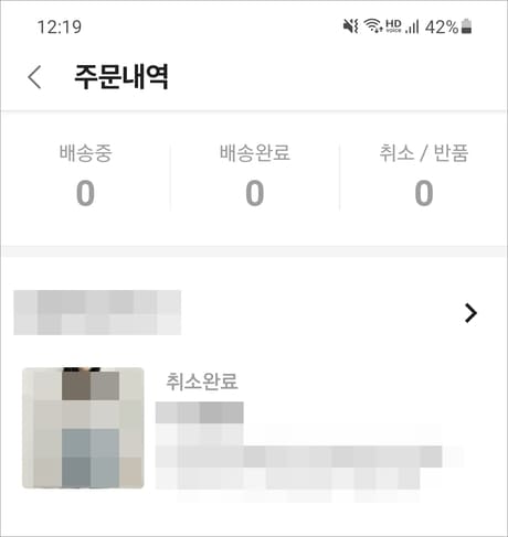 ▲주문내역을 터치해서 들어가 보면 배송 상황과 취소/반품 건수 확인이 가능합니다. 주문한 항목을 터치해봅니다.