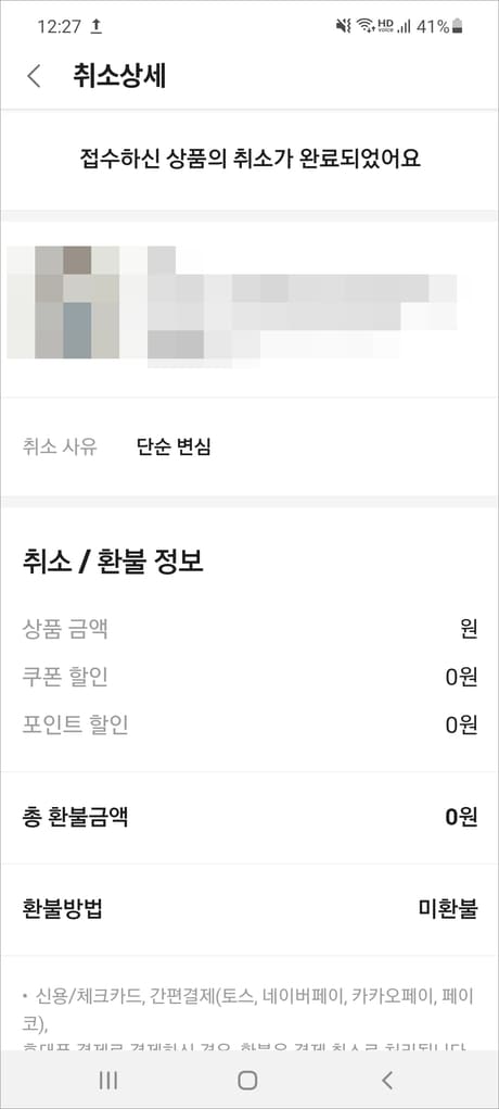 이 외에 승인 취소가 안 되는 경우 전부 주문할 때 입력한 환불 계좌로 처리가 된다고 합니다.