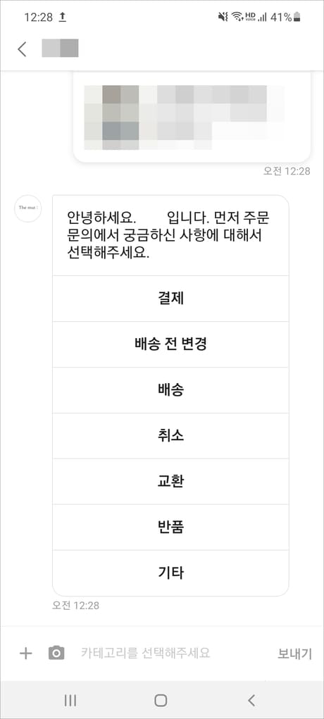 포장을 다시 해두고 앱에서 주문내역을 보면 주문 상세 메뉴가 있는데 여기서 반품 접수 및 교환 문의를 해주시면 됩니다.