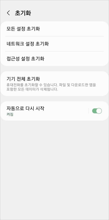 그리고 접근성 초기화는 다운로드한 앱의 접근성 설정이랑 글자 크기 키보드 연관된 설정들은 초기화되지 않습니다.(개인 관련 데이터에는 영향을 안 줌) 기기 전체 초기화는 갤럭시 핸드폰을 초기화하게 되는데 다운 앱이랑 파일들을 포함해서 모든 데이터들이 삭제 처리된다고 보시면 됩니다.