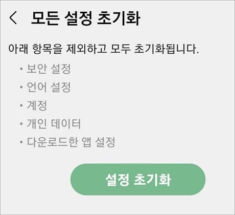 안내된 화면을 참고하시고 설정 초기화 버튼을 터치해서 진행하시면 되겠습니다.