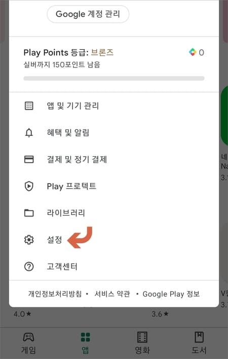 그런데 인터넷 연결도 정상인데 앱 업데이트가 안 되는 경우가 있습니다. 그럴 경우에 점검을 해봐야 하는데 먼저 구글 플레이 스토어 설정을 확인해봅니다.