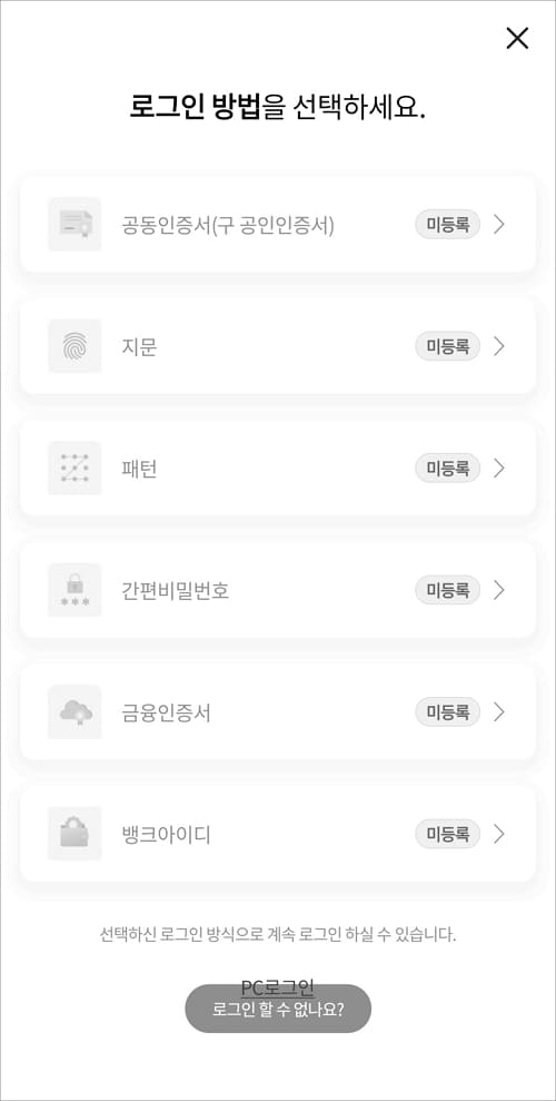 선택 가능한 로그인 방법