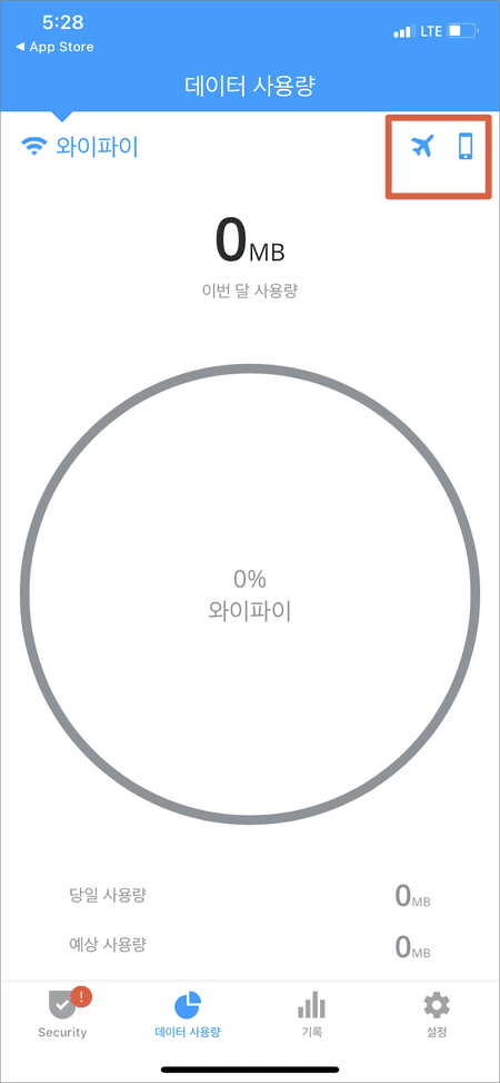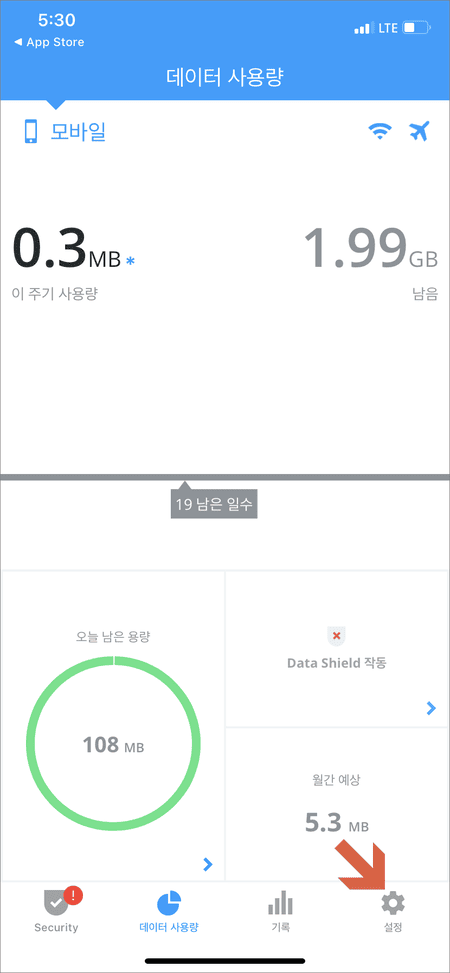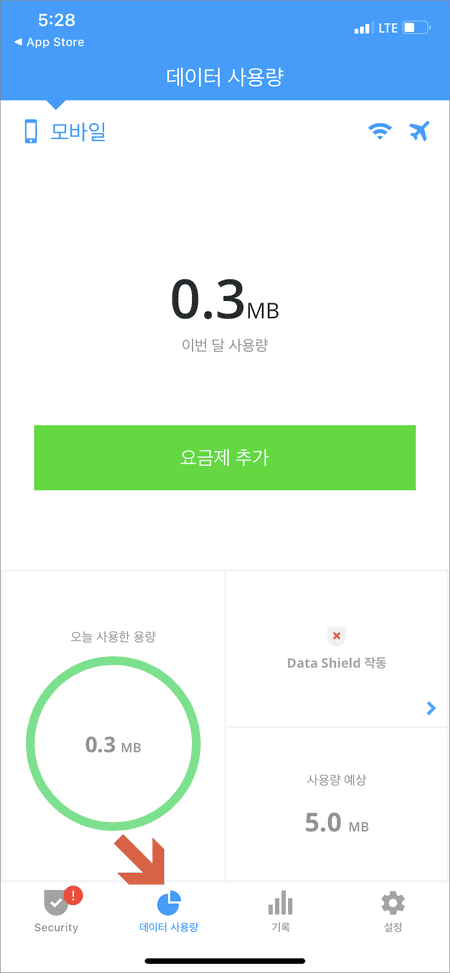 ▲화면 아래 데이터 사용량 메뉴를 선택해보시면 이번 달 데이터 사용량을 확인해볼 수 있습니다.