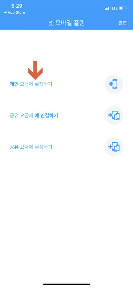 ▲개인 요금제 설정하기를 선택합니다. 플랜 유형과 데이터 갱신 기간, 데이터 제한 용량을 설정해줍니다.