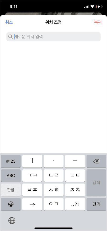 ▲위치 추가에서는 새로운 위치 입력을 해줄 수 있으며 오른쪽 상단에 복귀를 터치하게 되면 기존 위치정보가 다시 표시가 되겠습니다.