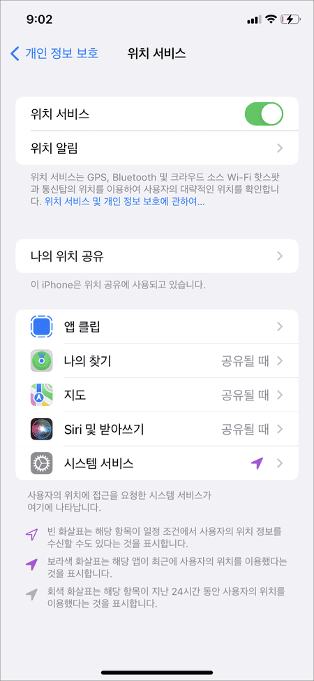 위치 서비스는 gps나 와이파이, 블루투스 등의 통신탑 위치를 활용해서 아이폰의 위치를 대략적으로 파악하게 됩니다. 근데 생각보다 정확하게 위치를 잡아내는 경우가 있습니다.
