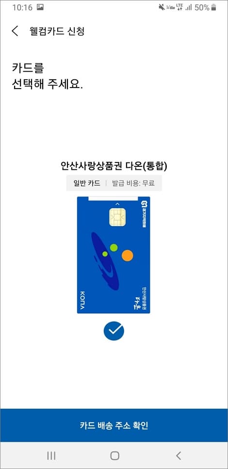 안산사랑상품권 다온카드를 체크해 주고 배송받을 주소를 입력해 주면 일주일 내로 집으로 배송이 됩니다. 그럼 앱에서 카드등록을 해주고 충전 계좌를 연결 후 가맹점에서 결제 사용하면 되겠습니다. 잔액조회는 카드등록을 해주시면 바로 확인이 가능합니다.