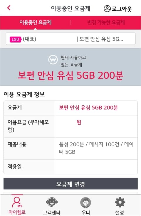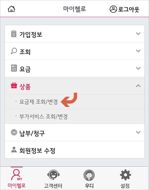 헬로모바일 고객센터 앱에서 요금제 변경 방법