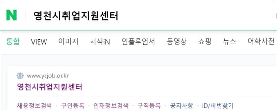 ▲취업지원센터에 바로 접속을 하려면 검색에서 “영천시취업지원센터”라고 검색하면 바로 이동을 해볼 수 있습니다.