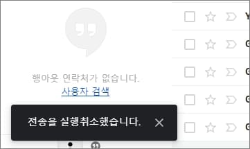 ▲메일을 작성하고 보내기를 하면 화면 하단에 “메일을 보냈습니다. 실행 취소”가 보입니다. 보이는 시간은 위에서 설정한 시간 동안 보이고 실행 취소를 클릭하면 발송 취소가 됩니다.