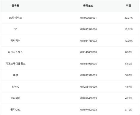 우리가 흔히 아는 국내 반도체 ETF들은 단순히 시가총액이 큰 삼성전자나 SK하이닉스 비중이 절대적입니다.