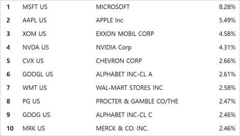 미국 시장에 상장된 수많은 기업 중에서도 이런 우등생들만 골라 담았으니, 장기적으로 맘 편히 들고 가기엔 이만한 컨셉도 없다는 생각이 듭니다.
